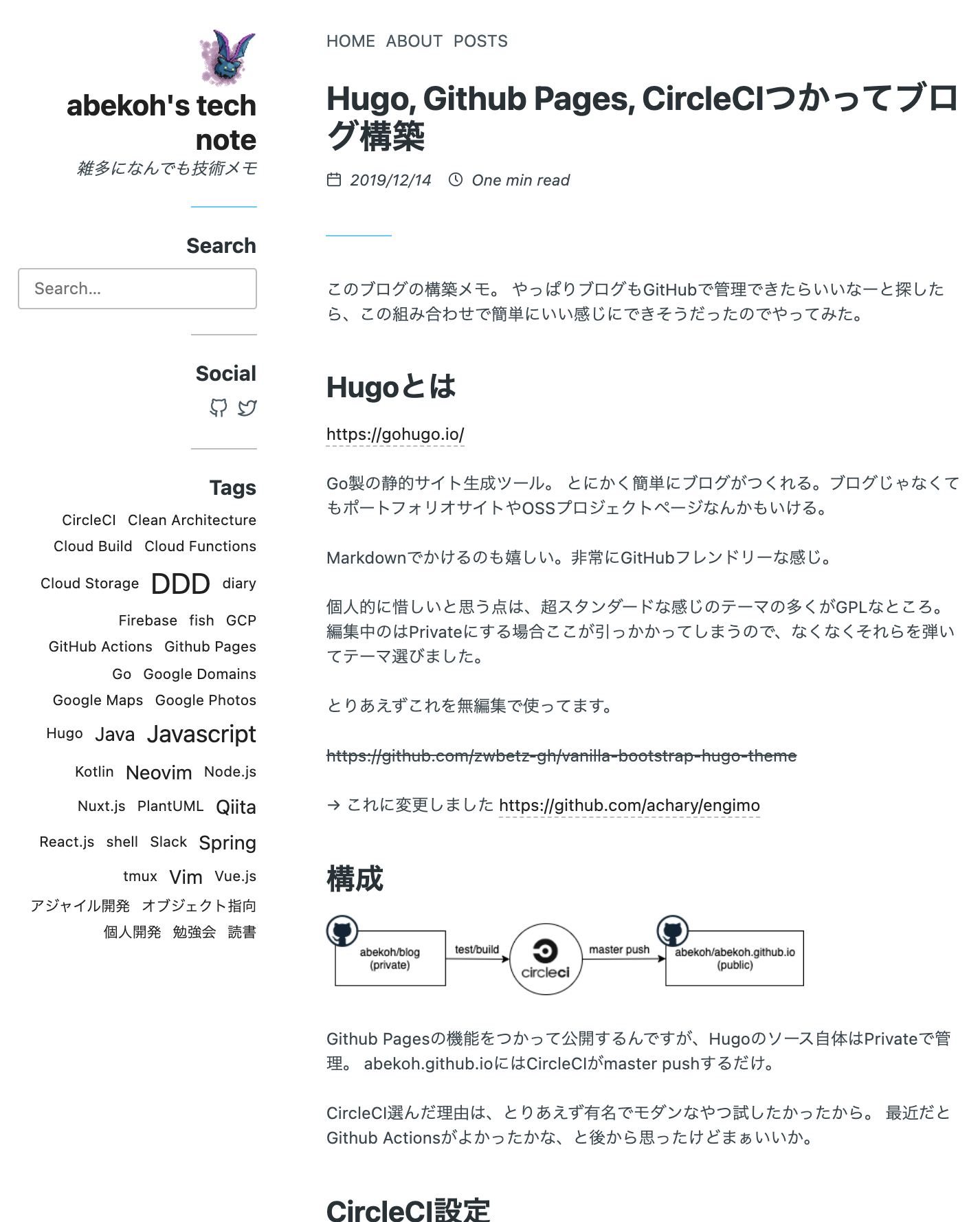 Hugo, Github Pages, CircleCIつかってブログ構築 - abekoh's tech note